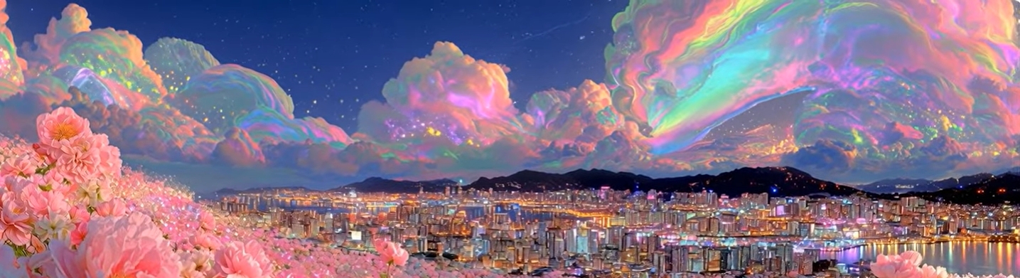 자개빛으로 시작해 을지로의 오래된 골목과 간판, 바닥 틈이 빛으로 다시 태어나는 흐름을 그렸다. 빛의 환상적 이미지로 과거와 현재,