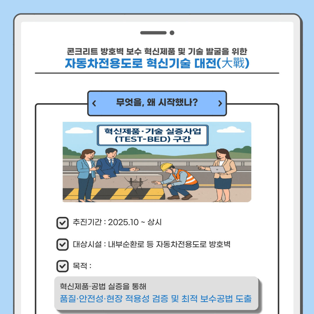 - 도로 시설물 유지관리 분야 모든 기술 (자동차전용도로 내)