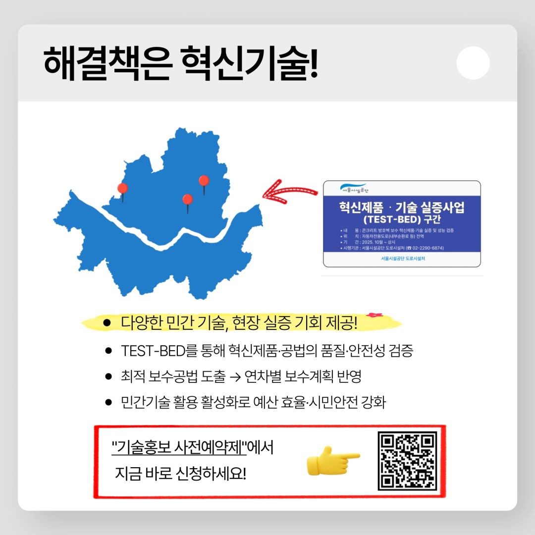 ※ 공단 사업 범위 내에 있는 기술로, 도로시설물을 효율적으로 관리하여 시민의 복리증진에 기여할 수 있는 기술을 대상으로 함